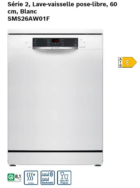- Réfrigérateur, congélateur, sèche-linge, plaque de cuisson, etc.